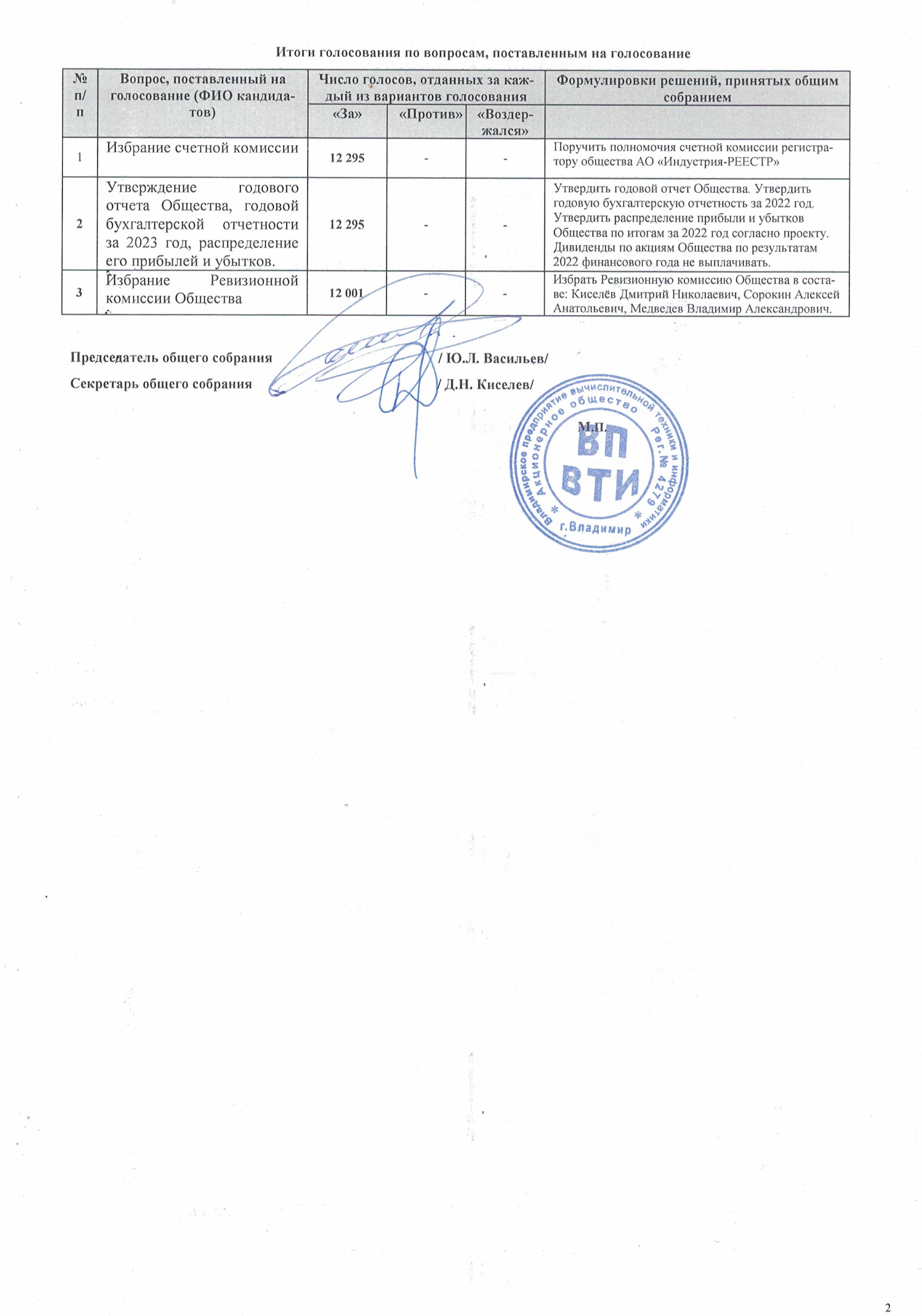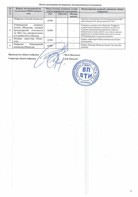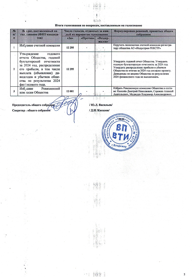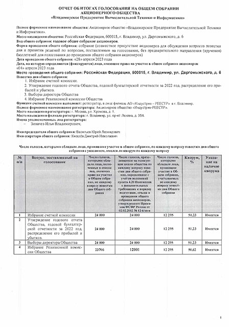 ОТЧЕТ ОБ ИТОГАХ ГОЛОСОВАНИЯ НА ОБЩЕМ СОБРАНИИ